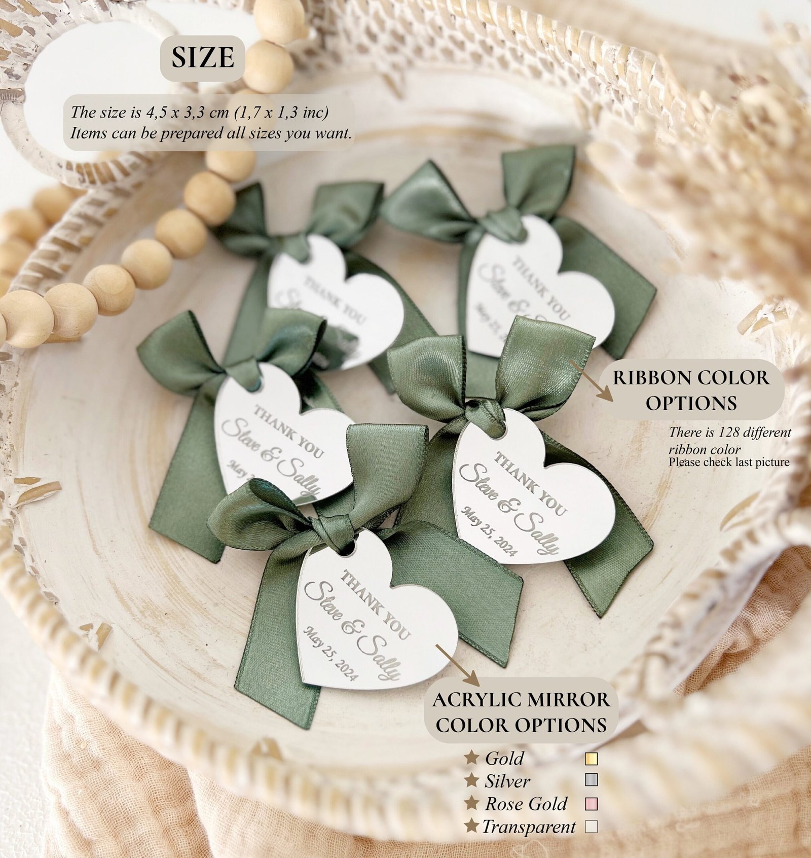 âšÂ PERSONALIZED HEART SHAPE MIRROR TAGS ⚠Add a romantic and luxurious touch to your event with our custom heart-shaped mirror acrylic tags â the perfect way to express love and gratitude on your special day. Crafted from premium mirror acrylic in your choice of gold, silver, or rose gold, each tag is personalized with names, dates, or a short message. Whether used as favor tags, place cards, or keepsakes, these elegant heart tags add timeless charm to any celebration.